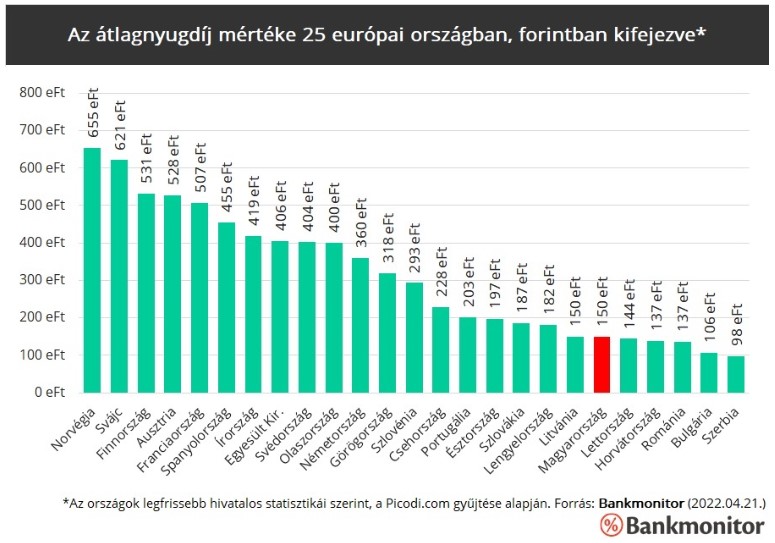 A magyar átlagnyugdíjak a Bankmonitor statisztikája
